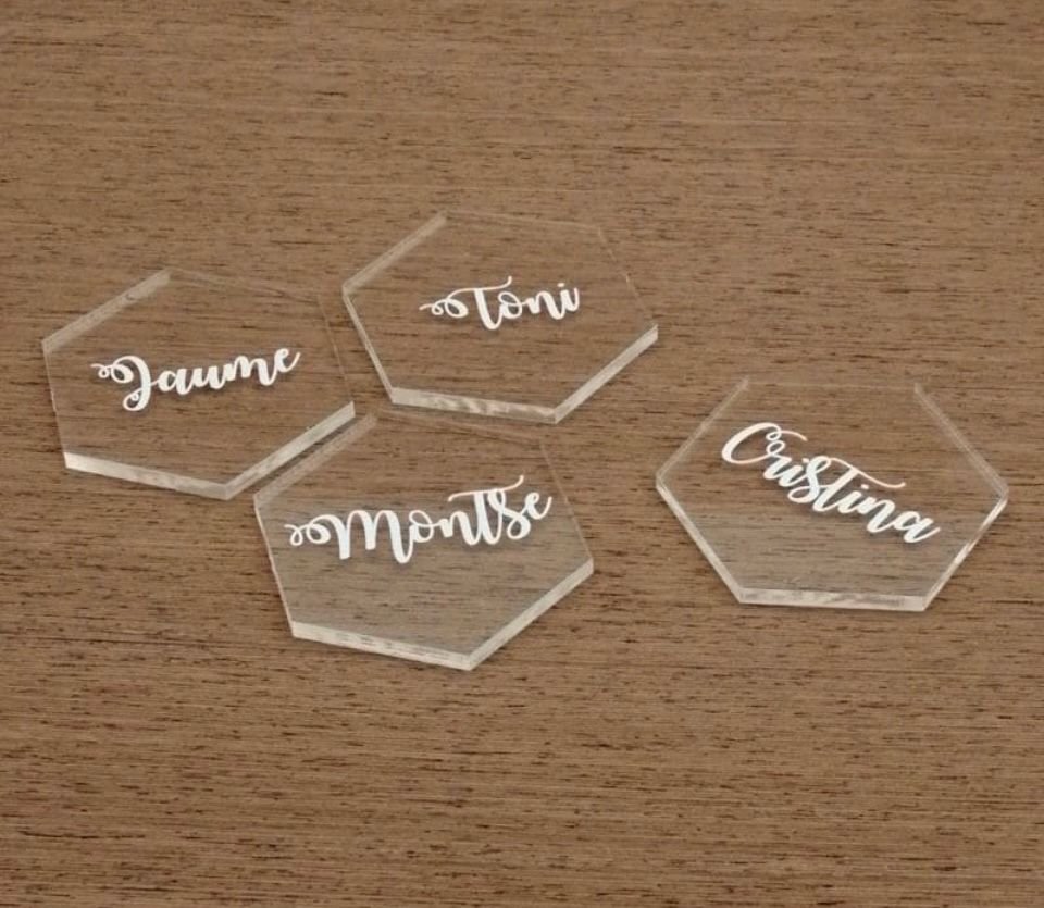 Dales la bienvenida perfecta  a tus invitados para indicarles donde se sentaran con estos bellos marcasitios en madera o metracrilato y si quieres añadirles imán o convertirlo en llavero  también lo realizamos serán un detalle único.
